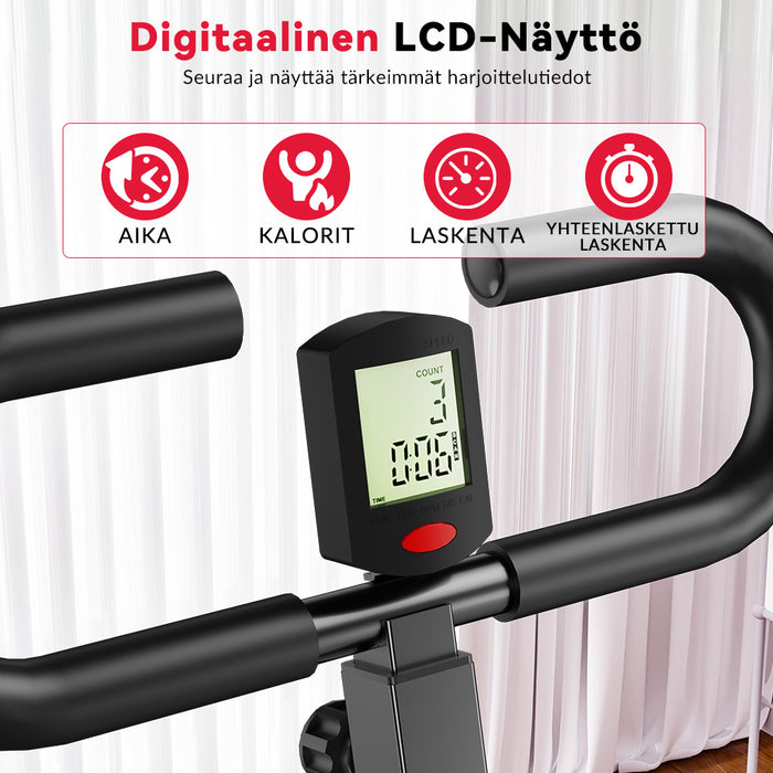 - Digitaalinen näyttö: aika, laskuri, kokonaislaskuri ja kulutetut kalorit